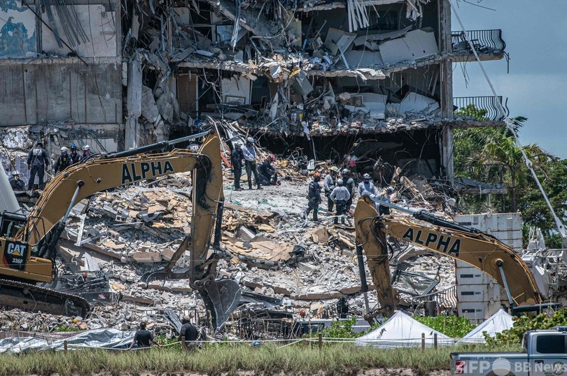 25日夜に地元当局が公表した2018年10月の報告書では、事故が起きた築40年の12階建て集合住宅「チャンプレイン・タワーズ・サウス(Champlain Towers South)」にはプール周辺の下のコンクリート層から駐車場の柱や梁(はり)にかけて「大きな構造上の損傷」がある恐れを指摘し、修理の必要があると結論。建物は近く修理が行われる予定だった。