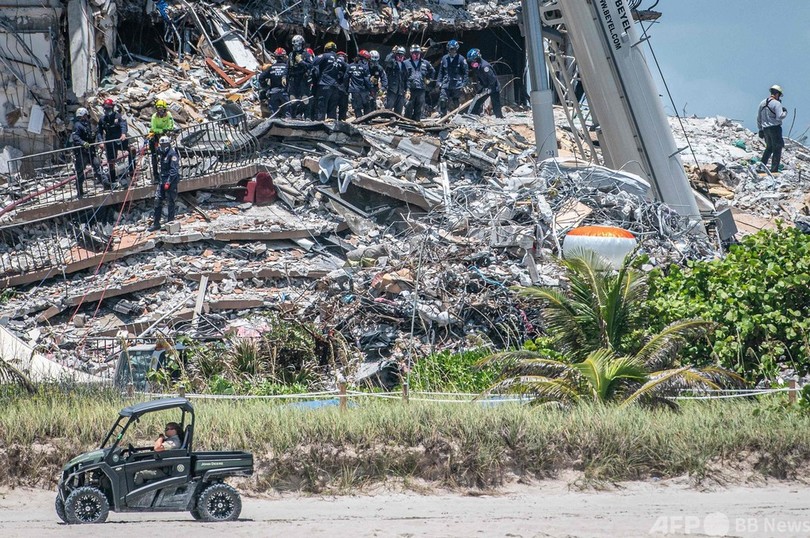 25日夜に地元当局が公表した2018年10月の報告書では、事故が起きた築40年の12階建て集合住宅「チャンプレイン・タワーズ・サウス(Champlain Towers South)」にはプール周辺の下のコンクリート層から駐車場の柱や梁(はり)にかけて「大きな構造上の損傷」がある恐れを指摘し、修理の必要があると結論。建物は近く修理が行われる予定だった。
