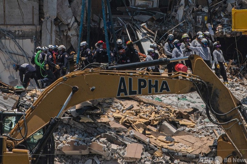 25日夜に地元当局が公表した2018年10月の報告書では、事故が起きた築40年の12階建て集合住宅「チャンプレイン・タワーズ・サウス(Champlain Towers South)」にはプール周辺の下のコンクリート層から駐車場の柱や梁(はり)にかけて「大きな構造上の損傷」がある恐れを指摘し、修理の必要があると結論。建物は近く修理が行われる予定だった。