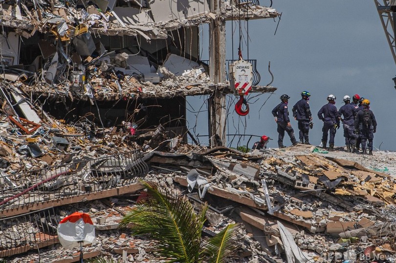 25日夜に地元当局が公表した2018年10月の報告書では、事故が起きた築40年の12階建て集合住宅「チャンプレイン・タワーズ・サウス(Champlain Towers South)」にはプール周辺の下のコンクリート層から駐車場の柱や梁(はり)にかけて「大きな構造上の損傷」がある恐れを指摘し、修理の必要があると結論。建物は近く修理が行われる予定だった。