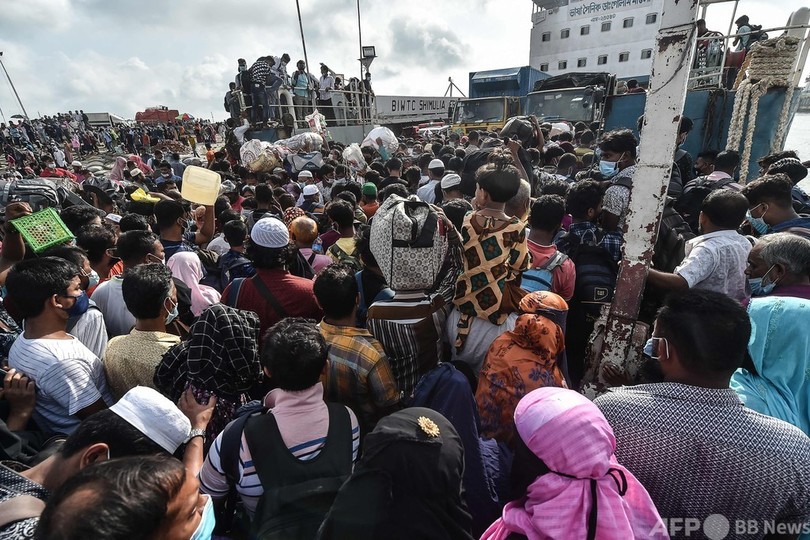 ロックダウン発表後の27日には、ダッカでは出稼ぎ労働者らの帰省ラッシュが始まり、何万人もが主要な河川を運航するフェリーに詰め掛けた。