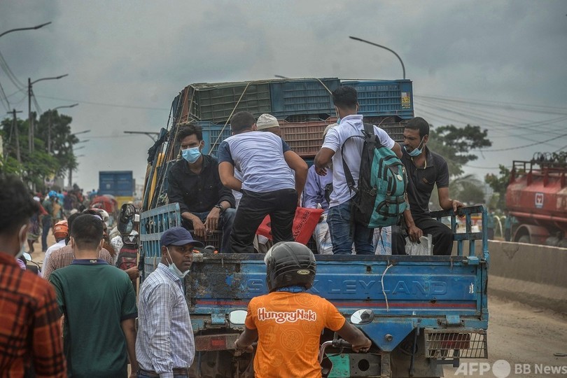 【6月29日 AFP】バングラデシュの首都ダッカで28日、新型コロナウイルス感染拡大抑止のための全面的なロックダウン(都市封鎖)導入を前に、当局がほぼ全ての公共交通機関を停止したため、数千人が移動手段を失う事態となった。