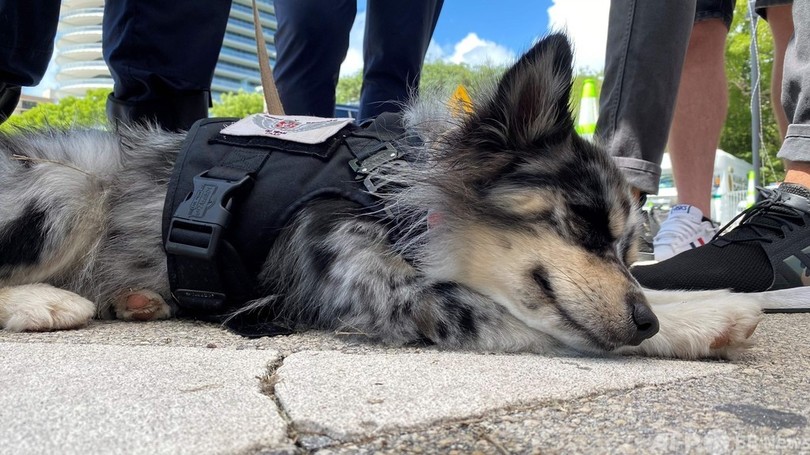 【6月29日 AFP】米フロリダ州で先週、12階建ての集合住宅が突然崩壊し、11人が死亡した。今も行方不明者150人の捜索が続いている。崩れ落ちたがれきの山から数ブロック離れた場所で、パトリック・ウィリアムソン(Patrick Williamson)さんは必要とする人に飼い犬のグレイシー(Gracie)を付き添わせてあげていた。