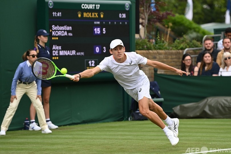 【6月30日 AFP】テニス、ウィンブルドン選手権(The Championships Wimbledon 2021)は29日、男子シングルス1回戦が行われ、セバスチャン・コルダ(Sebastian Korda、米国)が大会第15シードのアレックス・デミノー(Alex De Minaur、オーストラリア)を6-3、6-4、6-7(5-7)、7-6(7-5)で下し、2回戦に進出した。