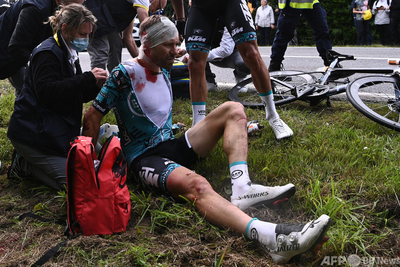 事故は26日、ブレストからランデルノー(Landerneau)までの第1ステージで発生。道路脇でプラカードを手にした観客が原因となり、トニー・マルティン(Tony Martin、ドイツ)が落車。後続の選手も次々に落車する大事故に発展した。