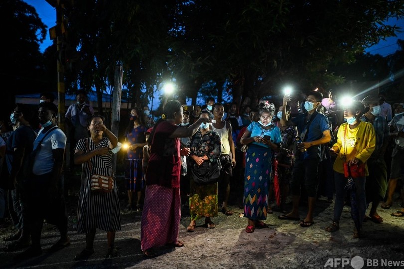 AFP記者によると、拘束されている人たちの解放の発表を受け、ヤンゴンのインセイン(Insein)刑務所の前には、家族ら200人以上が集まった。