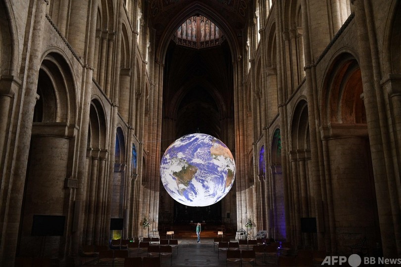 【7月4日 AFP】英イングランド東部ケンブリッジシャー(Cambridgeshire)イーリー(Ely)のイーリー大聖堂(Ely Cathedral)に、英国人アーティスト、ルーク・ジェラム(Luke Jerram)氏の作品「ガイア(Gaia)」が展示されている。地球をモチーフにした同作の直径は7メートル。展示は31日まで。(c)AFP
