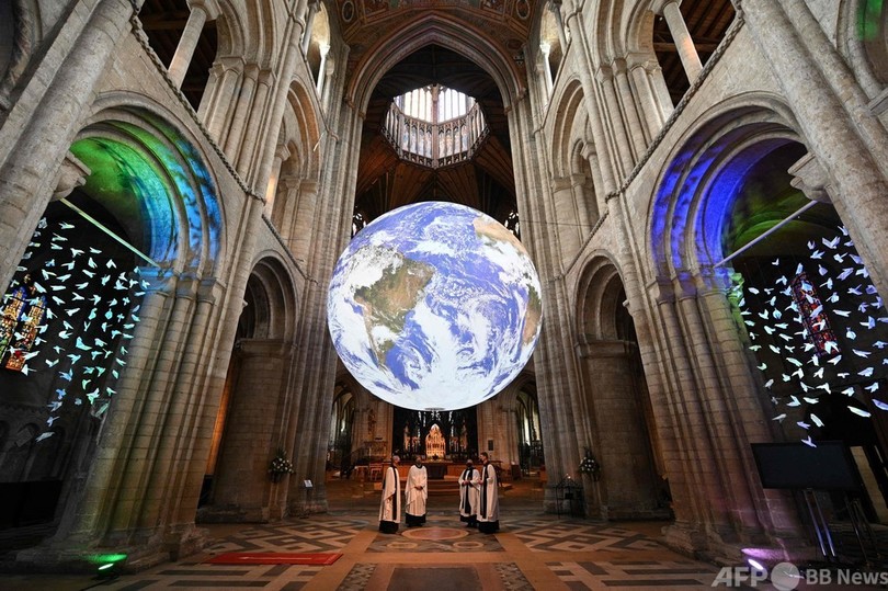 【7月4日 AFP】英イングランド東部ケンブリッジシャー(Cambridgeshire)イーリー(Ely)のイーリー大聖堂(Ely Cathedral)に、英国人アーティスト、ルーク・ジェラム(Luke Jerram)氏の作品「ガイア(Gaia)」が展示されている。地球をモチーフにした同作の直径は7メートル。展示は31日まで。(c)AFP