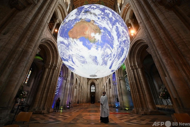 【7月4日 AFP】英イングランド東部ケンブリッジシャー(Cambridgeshire)イーリー(Ely)のイーリー大聖堂(Ely Cathedral)に、英国人アーティスト、ルーク・ジェラム(Luke Jerram)氏の作品「ガイア(Gaia)」が展示されている。地球をモチーフにした同作の直径は7メートル。展示は31日まで。(c)AFP