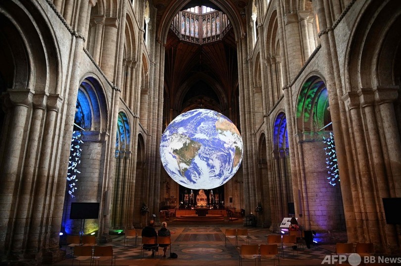 【7月4日 AFP】英イングランド東部ケンブリッジシャー(Cambridgeshire)イーリー(Ely)のイーリー大聖堂(Ely Cathedral)に、英国人アーティスト、ルーク・ジェラム(Luke Jerram)氏の作品「ガイア(Gaia)」が展示されている。地球をモチーフにした同作の直径は7メートル。展示は31日まで。(c)AFP