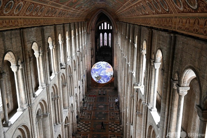 【7月4日 AFP】英イングランド東部ケンブリッジシャー(Cambridgeshire)イーリー(Ely)のイーリー大聖堂(Ely Cathedral)に、英国人アーティスト、ルーク・ジェラム(Luke Jerram)氏の作品「ガイア(Gaia)」が展示されている。地球をモチーフにした同作の直径は7メートル。展示は31日まで。(c)AFP