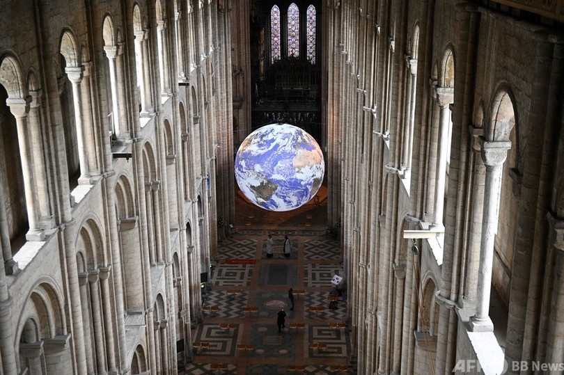 【7月4日 AFP】英イングランド東部ケンブリッジシャー(Cambridgeshire)イーリー(Ely)のイーリー大聖堂(Ely Cathedral)に、英国人アーティスト、ルーク・ジェラム(Luke Jerram)氏の作品「ガイア(Gaia)」が展示されている。地球をモチーフにした同作の直径は7メートル。展示は31日まで。(c)AFP
