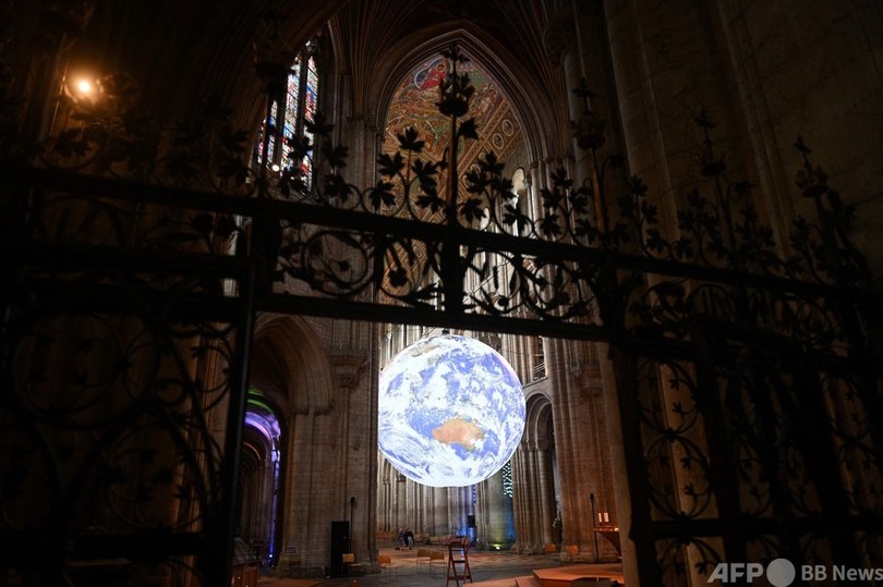【7月4日 AFP】英イングランド東部ケンブリッジシャー(Cambridgeshire)イーリー(Ely)のイーリー大聖堂(Ely Cathedral)に、英国人アーティスト、ルーク・ジェラム(Luke Jerram)氏の作品「ガイア(Gaia)」が展示されている。地球をモチーフにした同作の直径は7メートル。展示は31日まで。(c)AFP