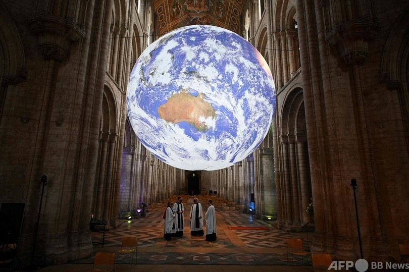 【7月4日 AFP】英イングランド東部ケンブリッジシャー(Cambridgeshire)イーリー(Ely)のイーリー大聖堂(Ely Cathedral)に、英国人アーティスト、ルーク・ジェラム(Luke Jerram)氏の作品「ガイア(Gaia)」が展示されている。地球をモチーフにした同作の直径は7メートル。展示は31日まで。(c)AFP