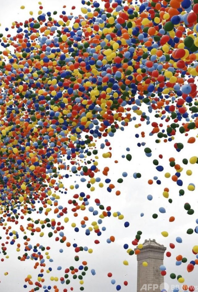 中国共産党100周年祝賀大会 礼砲と風船も環境保護に配慮