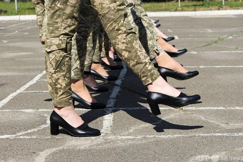 【7月3日 AFP】ウクライナ国防省が2日、女性兵士がヒールのある靴を履いて行進の練習をしている写真を公開し、物議を醸している。