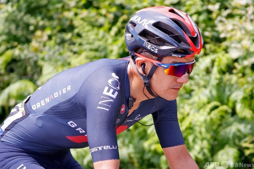 一方、今大会では不振が続くイネオス・グレナディアーズ(Ineos Grenadiers)は、チームで総合最上位につけるリチャル・カラパス(Richard Carapaz、エクアドル)が終盤にスパートを試みるも、フィニッシュラインで後続につかまってエネルギーを無駄にする形となった。(c)AFP/Damian MCCALL