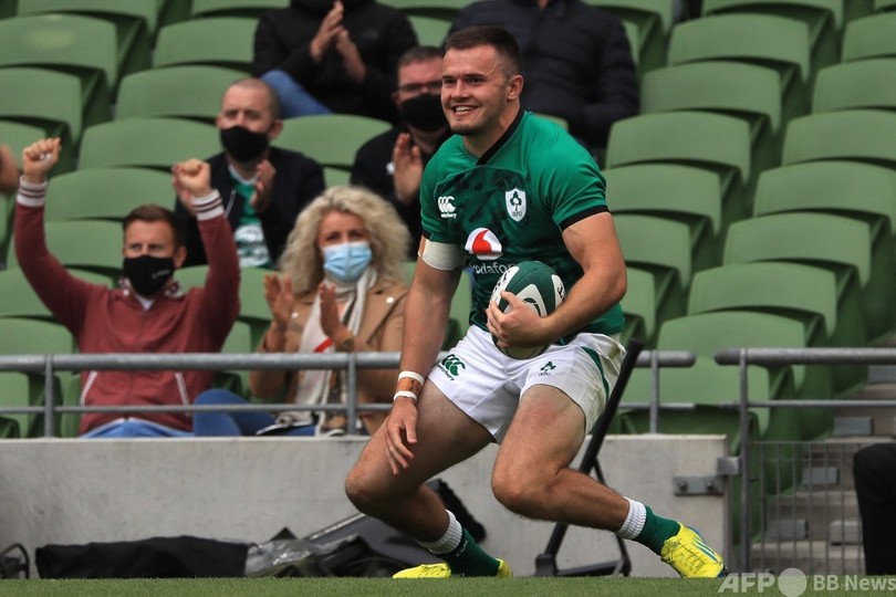 さらにコンバージョンキック4本を成功させたジョーイ・カーベリー(Joey Carbery)が、最後にペナルティーゴール2本を追加して日本を突き放した。(c)AFP