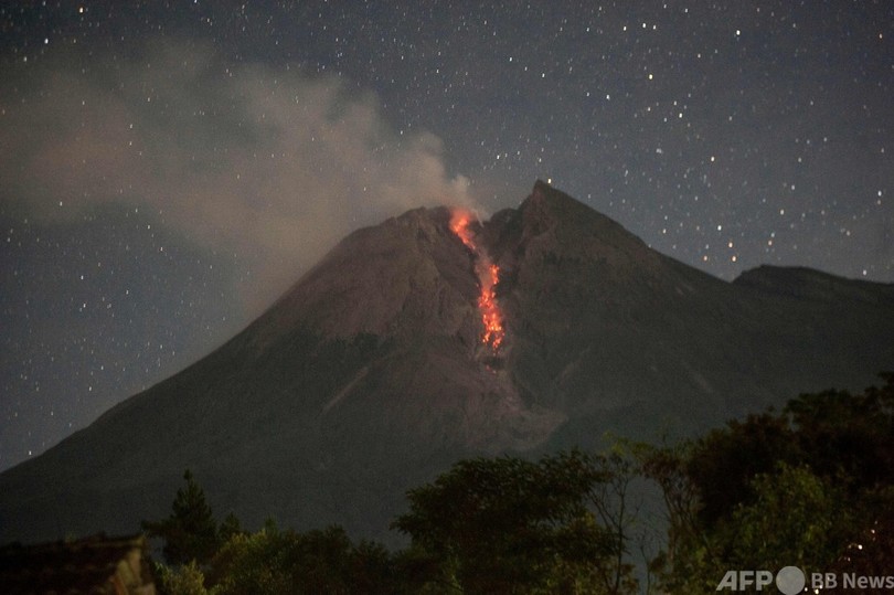 【7月4日 AFP】インドネシア・ジョクジャカルタ(Yogyakarta)特別州のクラテン(Klaten)で4日、同国で最も活発な火山、ムラピ山(Mount Merapi)からの溶岩や灰の噴出が観測された。(c)AFP