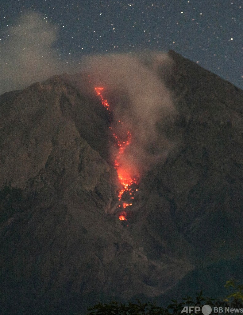 【7月4日 AFP】インドネシア・ジョクジャカルタ(Yogyakarta)特別州のクラテン(Klaten)で4日、同国で最も活発な火山、ムラピ山(Mount Merapi)からの溶岩や灰の噴出が観測された。(c)AFP