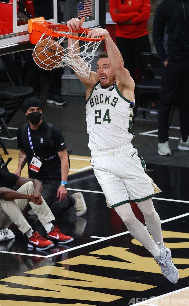【7月4日 AFP】20-21NBAは3日、プレーオフのイースタンカンファレンス決勝が行われ、クリス・ミドルトン(Khris Middleton)が32得点を記録したミルウォーキー・バックス(Milwaukee Bucks)は118-107でアトランタ・ホークス(Atlanta Hawks)を下し、4勝2敗として1974年以来となるファイナル進出を決めた。