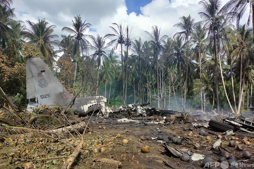 【7月5日 AFP】(更新)フィリピン南部で4日に起きた軍用機の墜落事故で、少なくとも50人が死亡し、53人が負傷したと、当局が明らかにした。