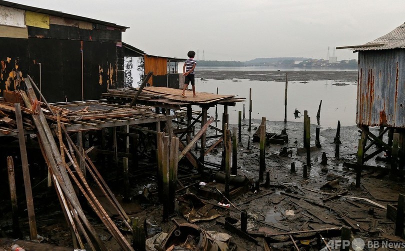 ここの水辺は悪臭を放ち、ごみが散乱している。さびた金属とゆがんだ材木でできた家に暮らす住民らは、生き延びるために必死だ。