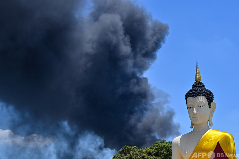 救急当局が近隣住民の避難を急ぐ中、空高く立ち上った黒煙は35キロ離れたバンコクの中心部からも見えた。