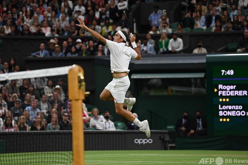 【7月6日 AFP】テニス、ウィンブルドン選手権(The Championships Wimbledon 2021)は5日、男子シングルス4回戦が行われ、大会第6シードのロジャー・フェデラー(Roger Federer、スイス)は7-5、6-4、6-2で第23シードのロレンツォ・ソネゴ(Lorenzo Sonego、イタリア)に快勝し、1968年のオープン化以降、男子では大会史上最年長での準々決勝進出を果たした。