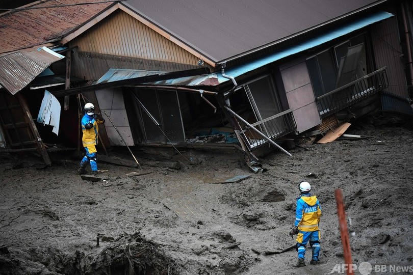 地元当局によると、安否不明者は先に発表されていた24人から増加し、27人となった。静岡県の杉山隆通(Takamichi Sugiyama)危機報道官はAFPに対し、時間の経過につれて生存者の救出が困難になっているものの、できるだけ多くの人命を救うため捜索を継続するとの方針を示した。(c)AFP/Shingo ITO