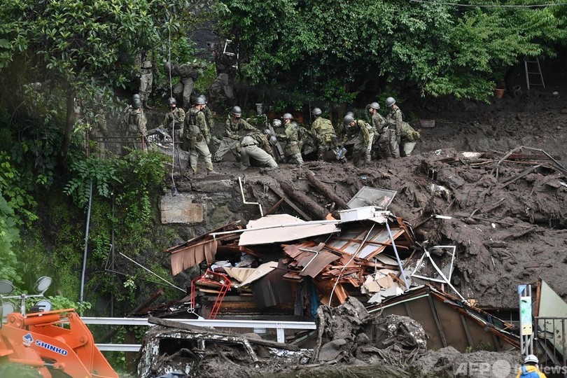 【7月7日 AFP】静岡県熱海市で起きた土石流は、発生から3日が過ぎた6日、新たに3人の死亡が確認され、死者は少なくとも7人となった。安否不明者は27人に上り、現場では懸命の捜索活動が続いているが、生存者発見の望みは薄まりつつある。