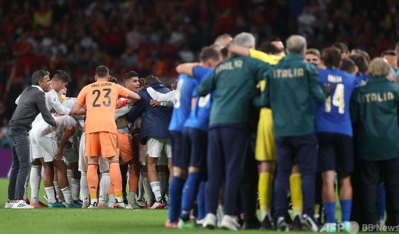 【7月7日 AFP】サッカー欧州選手権(UEFA Euro 2020)は6日、準決勝が行われ、イタリアはスペインと1-1で迎えたPK戦を4-2で制し、決勝に駒を進めた。