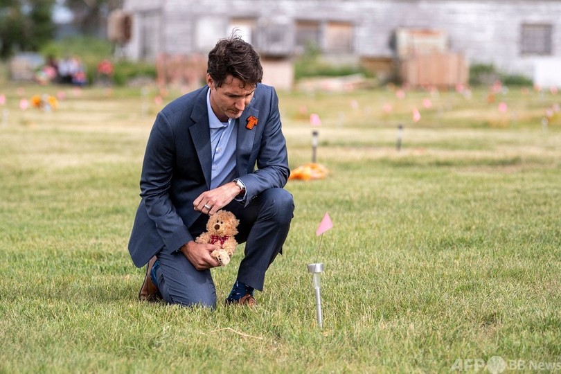 先住民団体カウェセス・ファースト・ネイション(Cowessess First Nation)のカドマス・デローム(Cadmus Delorme)代表らとも面会したトルドー首相は、墓が見つかった場所に足を運び、テディベアを手に亡くなった子どもたちを追悼した。
