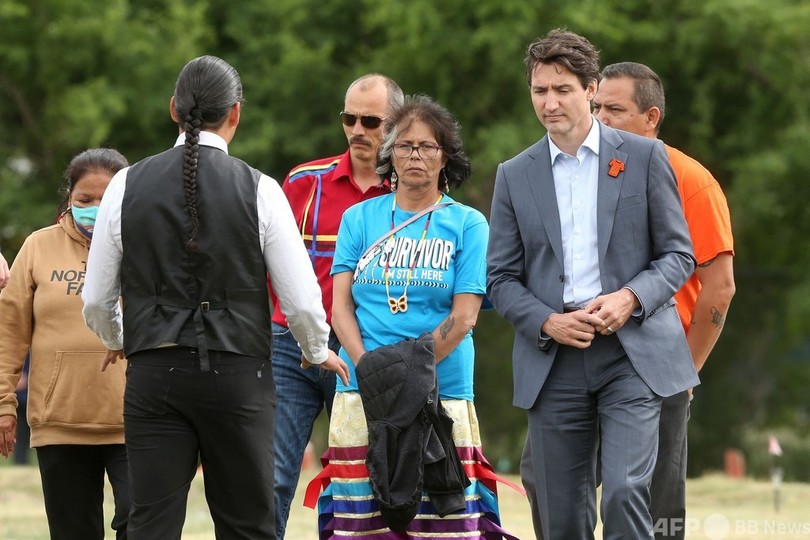 【7月8日 AFP】カナダのジャスティン・トルドー(Justin Trudeau)首相は6日、墓標のない墓が数百基見つかった同国中部サスカチワン(Saskatchewan)州にあるカトリック寄宿学校の跡地を訪問した。学校跡地から見つかった墓や遺骨は、寄宿学校で生活していた先住民の子どもたちのものだった。