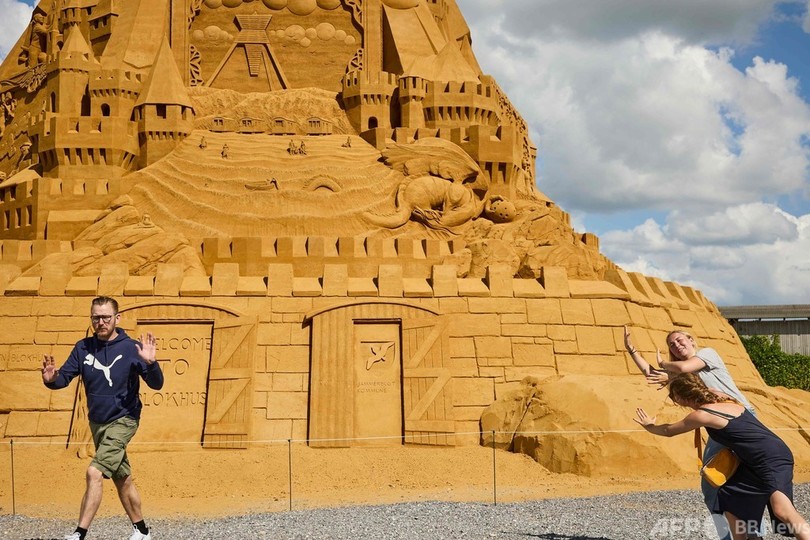【7月8日 AFP】デンマークの海辺にある小さな町ブロックフス(Blokhus)で7日、高さ世界一の砂の城が完成した。