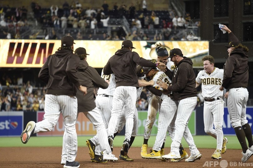 この回、サイ・ヤング賞(Cy Young Award)投手のシャーザーから7点を奪ったパドレスは、6回にトミー・ファム(Tommy Pham)の適時二塁打で同点に追いつくと、迎えた9回2死からトレント・グリシャム(Trent Grisham)がサヨナラ適時打を放ち、球団史上最大タイとなる8点差からの逆転勝ちを飾った。
