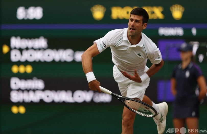 【7月10日 AFP】テニス、ウィンブルドン選手権(The Championships Wimbledon 2021)は9日、男子シングルス準決勝が行われ、大会第1シードのノバク・ジョコビッチ(Novak Djokovic、セルビア)は7-6 (7-3)、7-5、7-5のストレートで第10シードのデニス・シャポバロフ(Denis Shapovalov、カナダ)を退け、四大大会(グランドスラム)では自身30回目の決勝進出を果たした。
