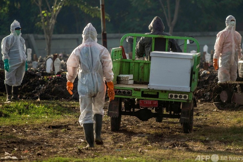 インドネシアでは、感染力の強い「デルタ株」が主流となり、新型ウイルスの感染が急拡大している。(c)AFP