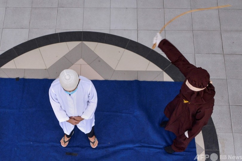 【7月10日 AFP】インドネシア・アチェ(Aceh)州のバンダアチェ(Banda Aceh)で8日、人目に付く場所で交際相手に接近してシャリア(イスラム法)に違反した男女に、公開むち打ち刑が執行された。(c)AFP