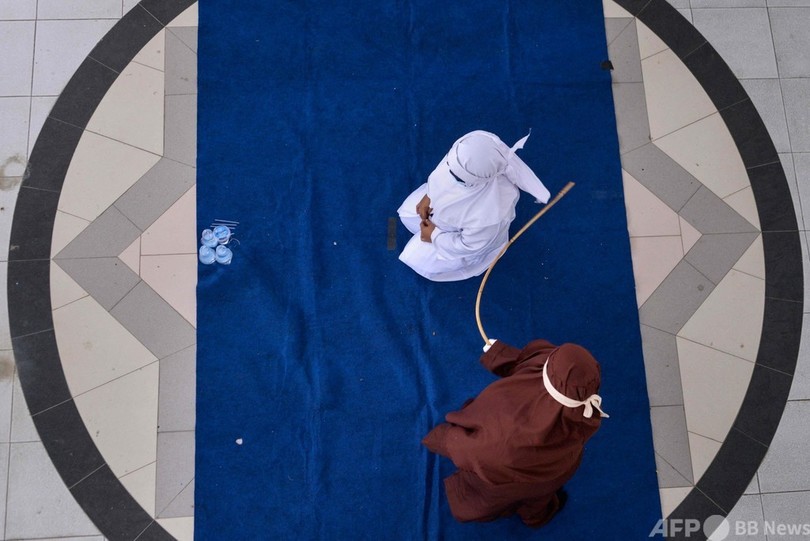 【7月10日 AFP】インドネシア・アチェ(Aceh)州のバンダアチェ(Banda Aceh)で8日、人目に付く場所で交際相手に接近してシャリア(イスラム法)に違反した男女に、公開むち打ち刑が執行された。(c)AFP