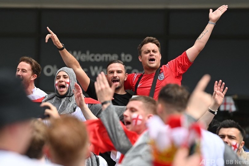 【7月12日 AFP】サッカー欧州選手権(UEFA Euro 2020)決勝、イタリア対イングランドのキックオフを数時間後に控え、大勢の熱狂的なイングランドファンが試合会場となる英ロンドンのウェンブリー・スタジアム(Wembley Stadium)に集結した。