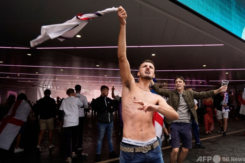 【7月12日 AFP】サッカー欧州選手権(UEFA Euro 2020)決勝、イタリア対イングランドのキックオフを数時間後に控え、大勢の熱狂的なイングランドファンが試合会場となる英ロンドンのウェンブリー・スタジアム(Wembley Stadium)に集結した。