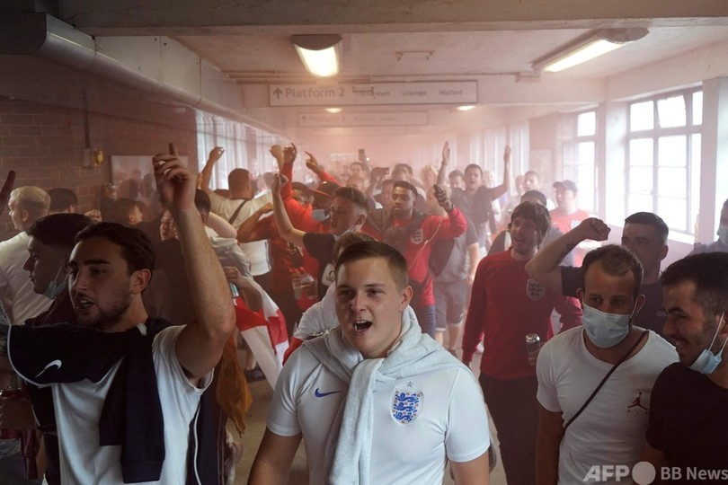 【7月12日 AFP】サッカー欧州選手権(UEFA Euro 2020)決勝、イタリア対イングランドのキックオフを数時間後に控え、大勢の熱狂的なイングランドファンが試合会場となる英ロンドンのウェンブリー・スタジアム(Wembley Stadium)に集結した。