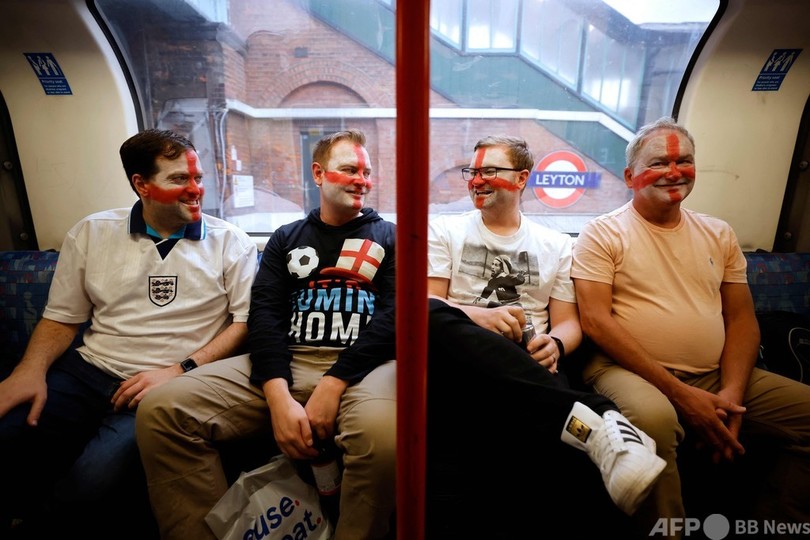 【7月12日 AFP】サッカー欧州選手権(UEFA Euro 2020)決勝、イタリア対イングランドのキックオフを数時間後に控え、大勢の熱狂的なイングランドファンが試合会場となる英ロンドンのウェンブリー・スタジアム(Wembley Stadium)に集結した。