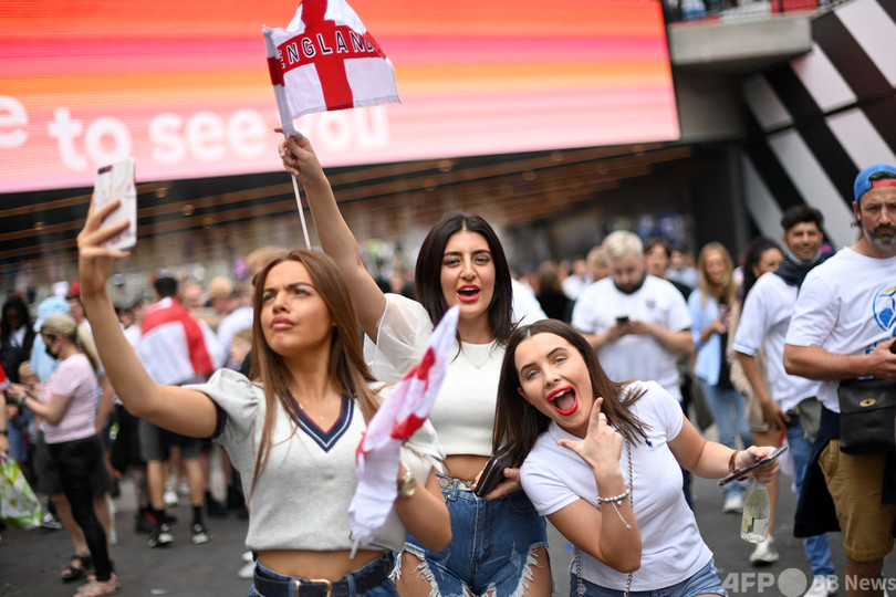 【7月12日 AFP】サッカー欧州選手権(UEFA Euro 2020)決勝、イタリア対イングランドのキックオフを数時間後に控え、大勢の熱狂的なイングランドファンが試合会場となる英ロンドンのウェンブリー・スタジアム(Wembley Stadium)に集結した。
