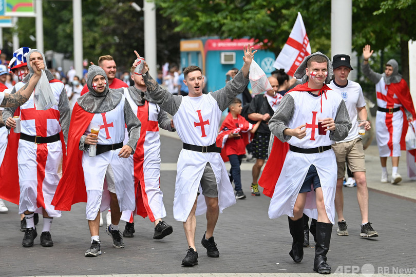 【7月12日 AFP】サッカー欧州選手権(UEFA Euro 2020)決勝、イタリア対イングランドのキックオフを数時間後に控え、大勢の熱狂的なイングランドファンが試合会場となる英ロンドンのウェンブリー・スタジアム(Wembley Stadium)に集結した。