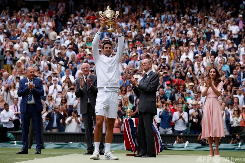 試合は大会第1シードのノバク・ジョコビッチ(Novak Djokovic、セルビア)が6-7(4-7)、6-4、6-4、6-3で第7シードのマッテオ・ベレッティーニ(Matteo Berrettini、イタリア)を下して6度目の優勝を果たし、男子歴代最多タイの四大大会(グランドスラム)通算20勝目を飾った。(c)AFP