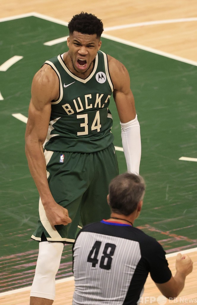 【7月12日 AFP】20-21NBAファイナル(7回戦制)は11日、米ウィスコンシン州ミルウォーキー(Milwaukee)で第3戦が行われ、ヤニス・アデトクンポ(Giannis Antetokounmpo)が41得点13リバウンドでチームをけん引したミルウォーキー・バックス(Milwaukee Bucks)が、120-100でフェニックス・サンズ(Phoenix Suns)に大勝し、50年ぶりのファイナル制覇へ仕切り直しの1勝を挙げた。