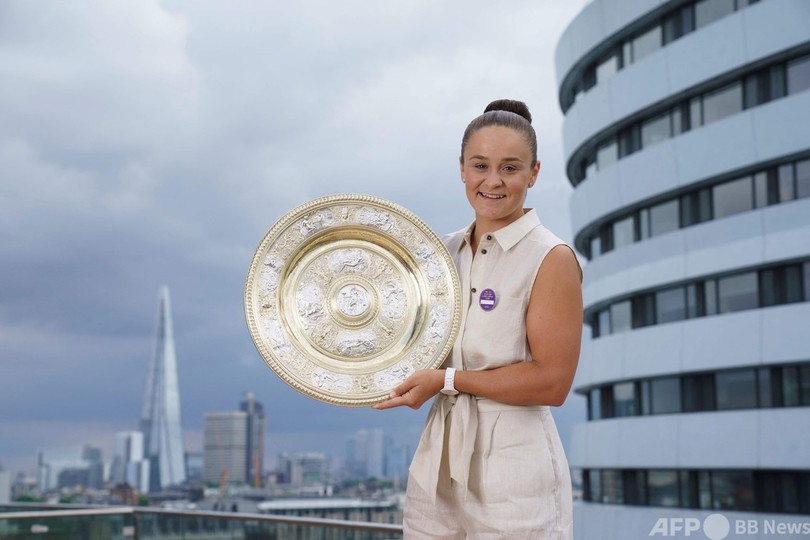 【7月12日 AFP】テニス、ウィンブルドン選手権(The Championships Wimbledon 2021)の女子シングルスを制したアシュリー・バーティ(Ashleigh Barty、オーストラリア)が11日、優勝トロフィーを手に英ロンドン市内で記念撮影に臨んだ。