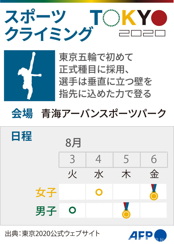 【7月12日 AFP】東京五輪で初めて正式種目に採用されたスポーツクライミングの競技日程を図解でまとめた。